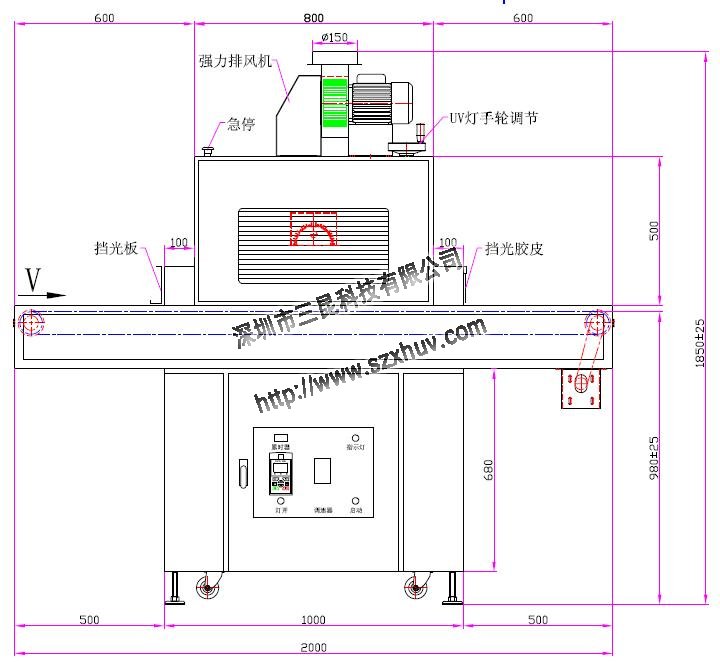 1、UV燈功率:8.0kw*1支(UV燈)